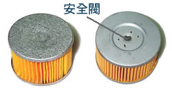 為了使濾清器在異常的阻塞狀況下不至中斷油路,以免造成引擎嚴重損傷,在濾芯上都有安全閥的設計。一旦濾芯阻塞油壓上升時安全閥便會開啟,讓油路持續流動,但此時濾清器已經喪失過濾功能。因此,安全閥的開啟壓力也是經過設計後制訂。如圖左側的產品為了節省成本將,將安全閥省略,這是非常危險的作法。