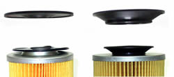 要將金屬蓋與濾材接合必須靠接著劑, 而且是必須耐溫、耐油及添加劑的接著劑。接著劑的塗佈也必須足量以避免有間隙而造成旁通。