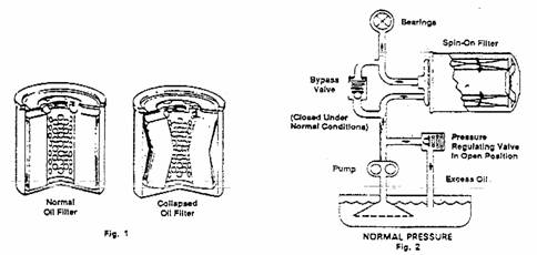 在一些例子中,僅僅是”卡死” 的保護油閥還不至於造成濾清器變形。油壓調節閥也可能卡死,因而造成油壓上升並流經濾清器。雖然這個情形也許只是瞬間的,但是如果保護油閥故障而無法將壓力降低,濾清器中的濾芯恨快就會被擠壓變形。